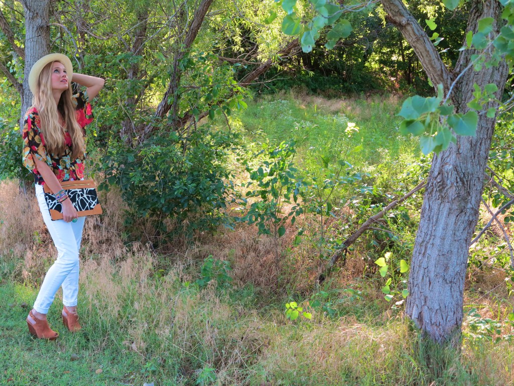the Panama hat has quite a history. it’s practicality and style have served it well over the centuries. From its beginnings in the 17th century, to Theodore Roosevelt and its rise to icon status, it’s fame was further established in acclaimed hollywood movies like “to kill a mockingbird” and “gone with the wind.” today, its classic, contemporary, and practical elements are gracing the heads of thousands of spectators at one the world’s most celebrated sporting events Rolland Garros. this is a hat transcending time, bringing history to present day and it’s track record proves it can be worn with almost anything from a silk suit to current street styles. with white denim jeans, a kimono-style top, bright belt and wrap bracelets, this hat certainly “tops off” my look. with the perfect wide brimmed hat to shelter me from the sun, i’m ready to take the oklahoma fields by storm.