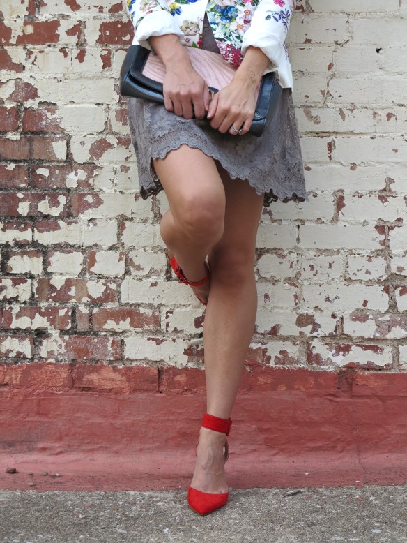 i love the reemergence of the pointed-toe pump. it is so refined, captivating yet always classic. i found these red pumps from zara and with this dress, i feel it’s the perfect shoe! i’ve had this dress for awhile and always felt i didn’t have the right pump for it. this bright heel is the perfect accompaniment; especially with a busy blazer, this look is well-balanced and to the point.