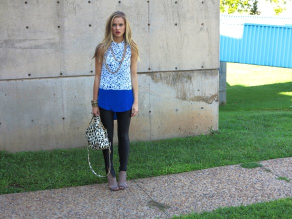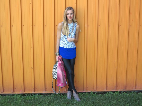 i haven’t invested in too many sporty pieces, but here i’ve added a taste of the popular trend. the faux leather leggings and the zipper booties add elements of sport to this look and really transitions this look from summer to fall. this summery top contrasts well with these very “heavy” bottom pieces. with lightweight blazer, i have a new look for fall. (since i’m crazy about blazers, it’s no surprise i added one here!) with these transitional pieces, i promise to be a good sport once fall is truly here. i’m looking forward to a change of weather:) trust me!