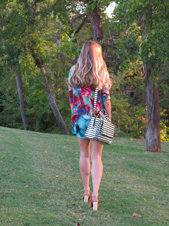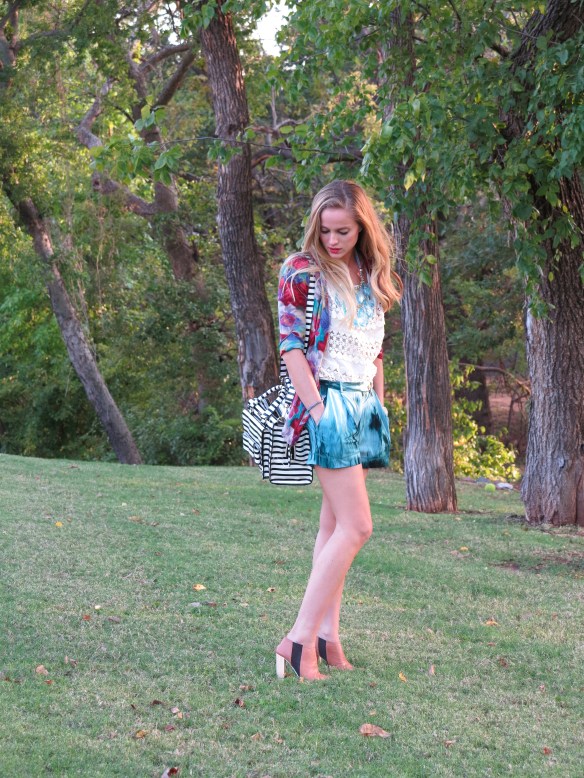i love the look of color mixing.  what better way to mix colors, than with watercolors?  reminding me a bit of my childhood days (often in an apron, with cups of water and a couple of Crayola watercolor palettes), i usually thought i was creating a masterpiece of art.  now, i’ve turned to clothing to be creative; a bit more of an expensive venture;) with the hype of printed jeans, these shorts are the perfect substitute considering the heat wave we received last week.  just reminiscing of my childhood days with watercolor paints and hoping for cooler weather….